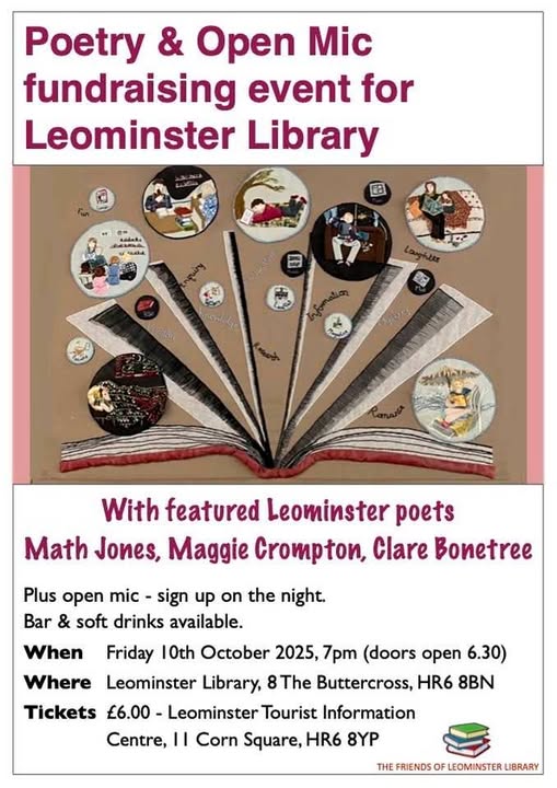 Poetry & Open Mic Fundraiser for Leominster Library – Leominster Library Date: Fri 10th Oct Time: 18:30